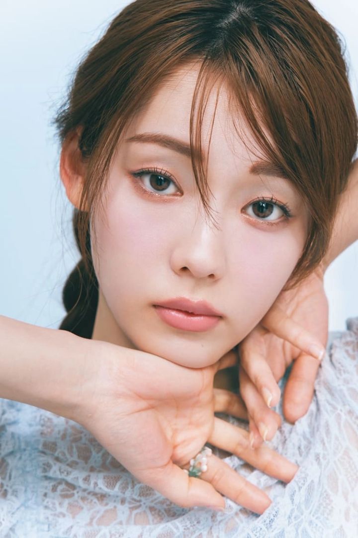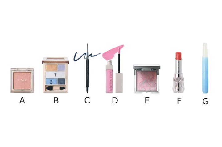 もともとの透明感を引き上げるように、目元だけでなくチークやリップにも青みトーンをこっそり仕込んで。寂しげ回避に白みピンクを忍ばせれば完璧!