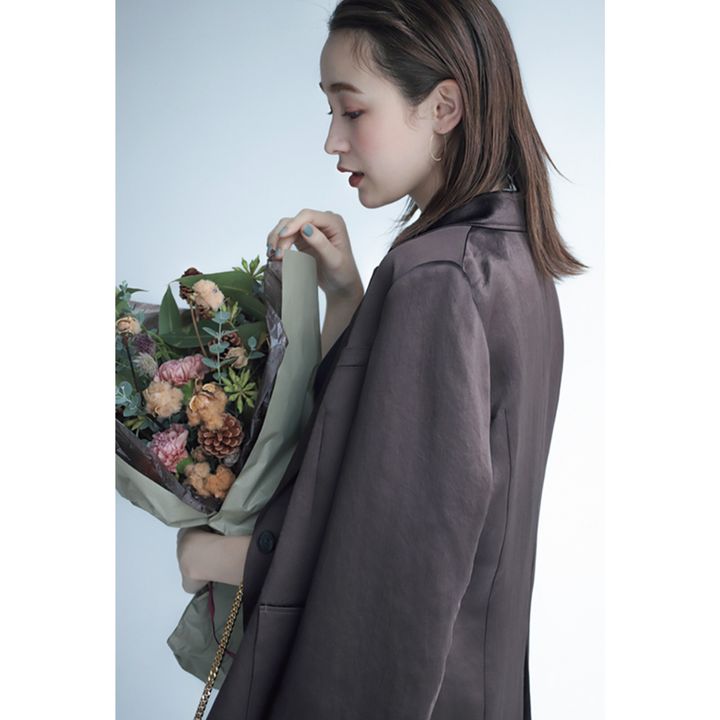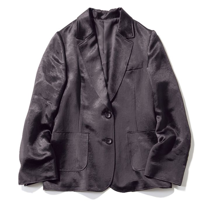 光沢感が美しいベーシックなシングルボタンタイプのテーラードジャケット。今季トレンドのブラウンカラーなら、エレガントながらもどことなくリラクシーなムードが漂い、柔らかな印象です。ジャケット¥25,300(ánuans)
