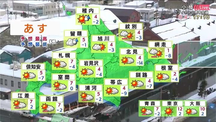 背景は24日午後5時ごろの小樽情報カメラ