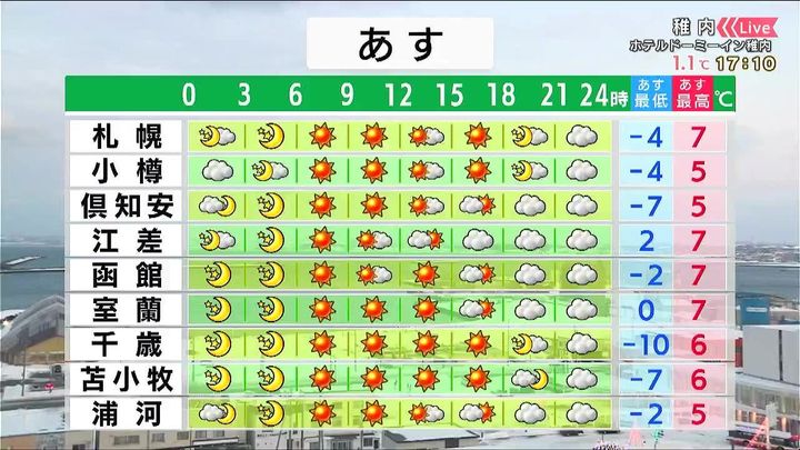 ・あすの札幌の朝昼晩の天気