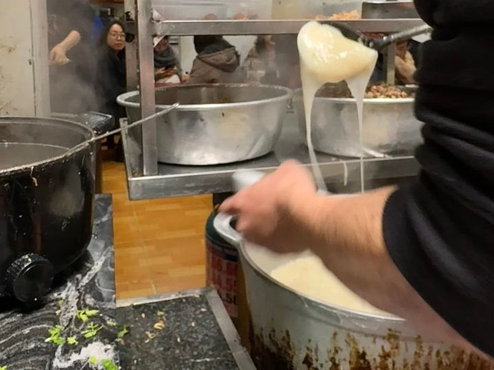 別のお店で撮った、お餅を入れる瞬間の写真。日本のものよりトロトロなお餅。味はお出汁の優しい香りがしてなんだか懐かしい味がしました。モチモチトローリなお餅が餡と絡んでたまらない美味しさです! ベトナム料理で一番好きかも〜! ベトナム中が派手派手に活気付く季節なので、みなさんもぜひテトの期間に遊びに来てくださいね♡