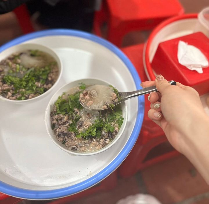 ほぼ道端のこのお店がお雑煮屋さん。ベトナムらしいちっちゃなプラスチックの椅子に座っていただきます。