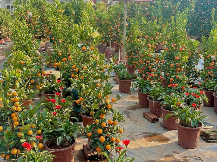 近所のお花屋さんは金柑畑みたいになっていました!気合いがすごい! テト前1ヶ月はみんなウキウキそわそわしていてお仕事も開店休業状態。昼間からそこらじゅうで忘年会をしています。テトのお休み期間中は全てのお店が閉まり、それぞれの故郷に帰省します。ちなみにテト開けの1ヶ月間もお正月ボケで開店休業状態です(笑)。