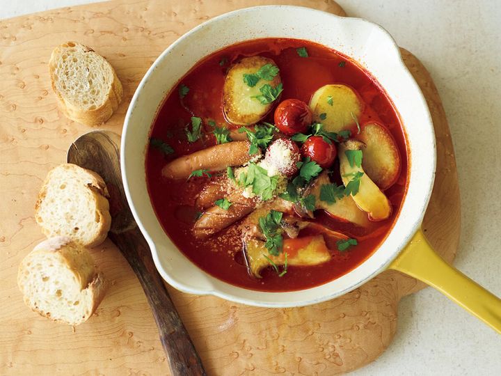 3. スープベースはトマトジュース!?うまみがぎゅっと詰まった【トマトポトフ鍋レシピ】