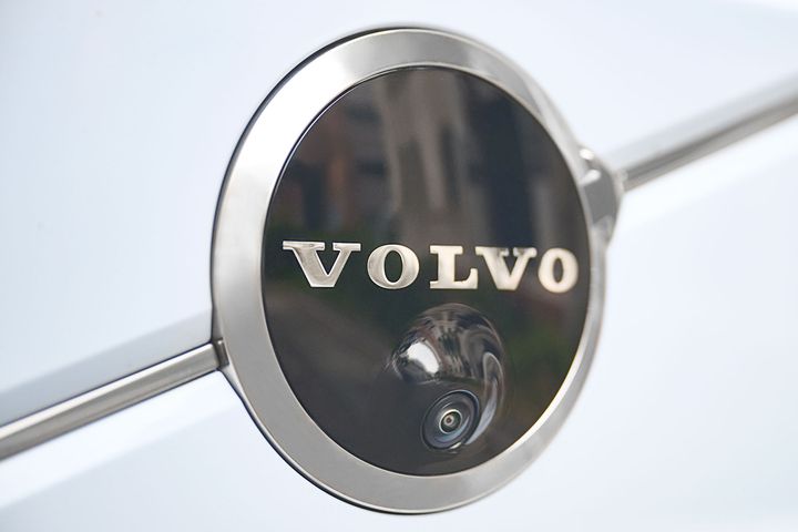 ロゴと円、矢印、そして斜めのバーで表現されるボルボのエンブレム。時代と共に少しずつ変化し、今のデザインはEV車に似合うモダンなシンプルさが印象的です。