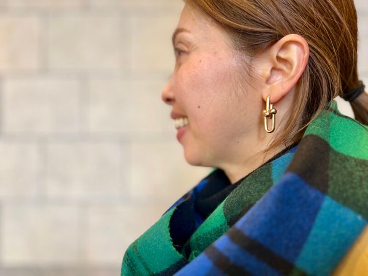 買い回りしやすいように身軽なデニムスタイルだけど、「ティファニー」のピアスと「セリーヌ」のバッグが、さりげなく大人世代ならでははの上品さを演出。「バッグは10年以上愛用しているのもの、ピアスは夫からのプレゼントで、どちらも私に欠かせない大切なアイテムです」。