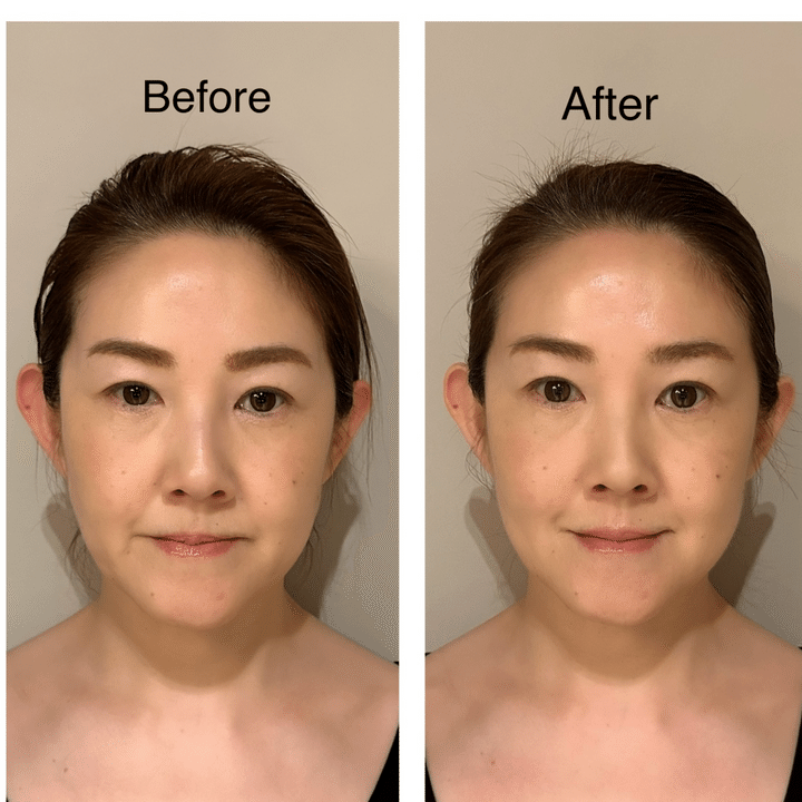 施術が終わると視界がパッとクリアに。鏡に映る顔からはむくみがすっかり抜け、何より心が前向きに。表情にもそれが表れているのか…‼︎と、驚きました。「即効性を実感される方は多いんですよ」とセラピストの垣内さん。