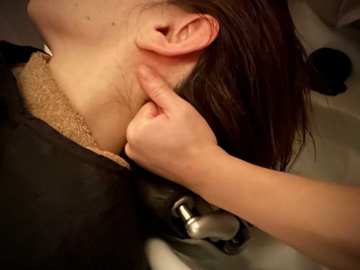 いよいよメインの骨膜アプローチへ。軽やかなタッチから強めの圧を交えた絶妙な手技で、頭頂部、側頭部、後頭部をじっくり解きほぐしていきます。首を左右にのばし、それぞれのネックライン、フェイスラインのリンパまで流していく施術も加わって、サーっと何か流れていく感覚がありました。ヘッドスパで肩や背中、デコルテのマッサージまでしてもらえるのはお得感があります。