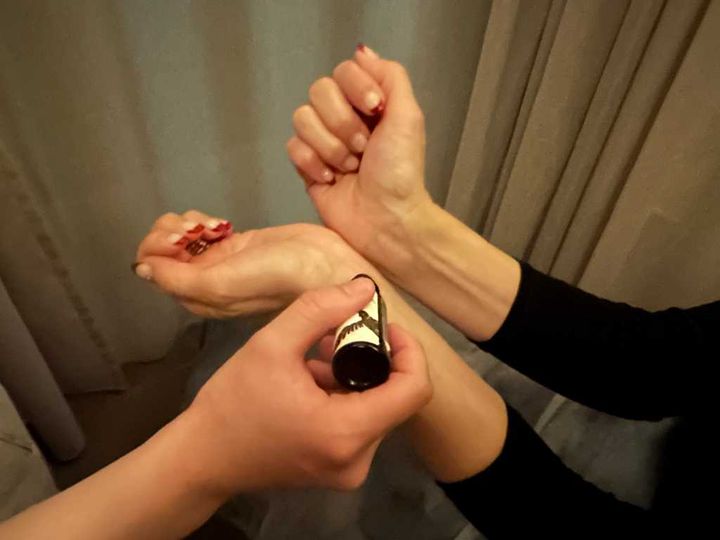 バランシングオイルを3種嗅ぎ、直感で選んだ香りでゆっくりと深呼吸。