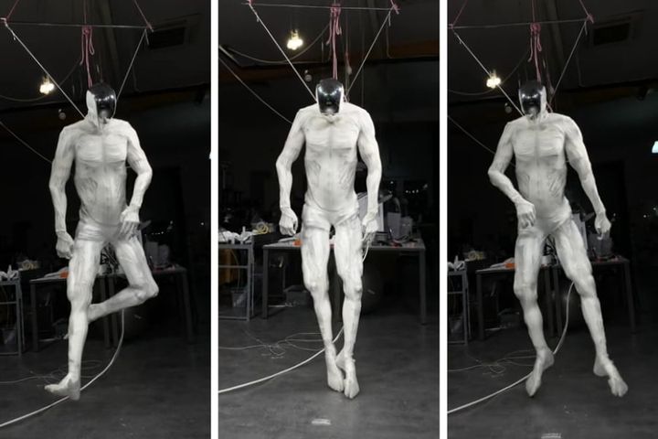【身をよじる宙吊りロボット】CLONE社が人工筋肉でできた人型ロボットを公開
