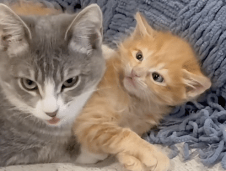 「まだ終わりじゃないにゃ!」毛繕いを途中でやめられて抗議する子猫さん