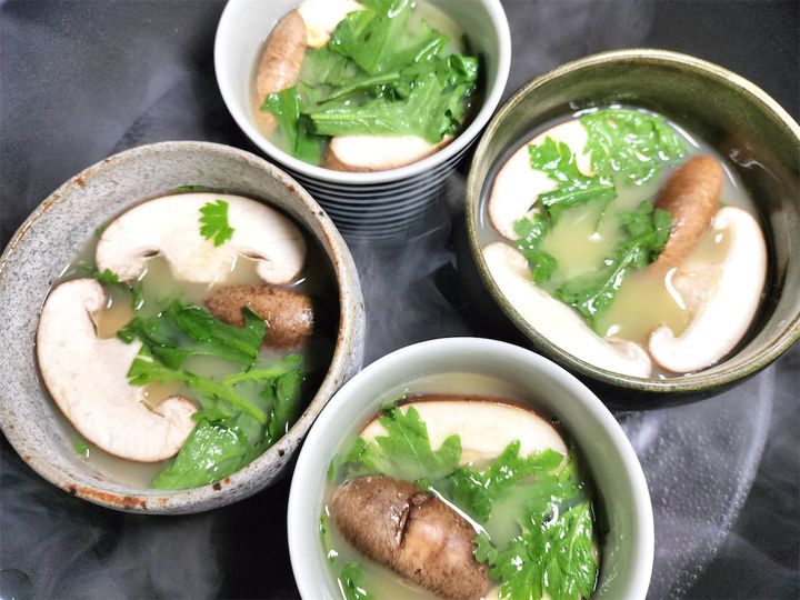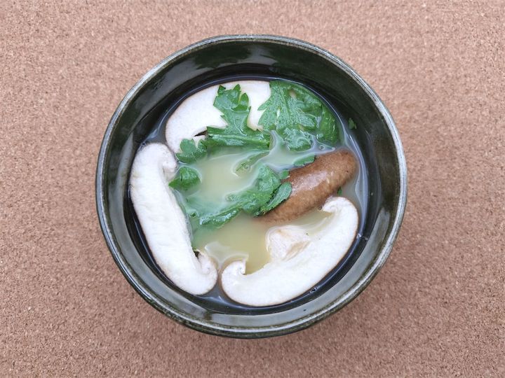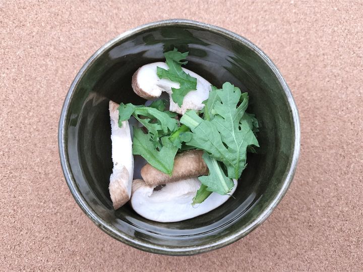 春菊:葉っぱの部分だけ食べやすい大きさに切っておきます。