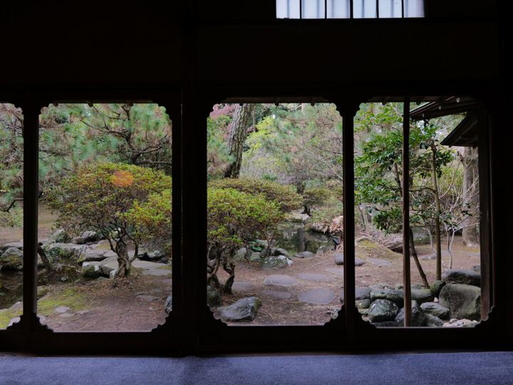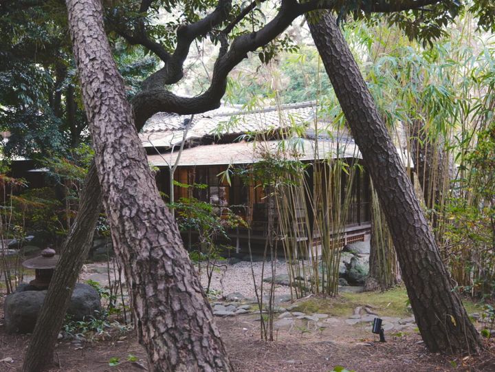 「文学のみち」沿いにある『沼津倶楽部』の日本庭園と建築も素晴らしかった。美しく整えられた庭園を進んで長屋門をくぐると、別世界に足を踏み入れたような気持ちになって心踊る。「茶亭」と名付けられた建物に入ると日本の粋や美意識がそこここに散りばめられていて、あちらを見てもこちらを見てもため息がでる。現在は食事をいただけるダイニングルームとして使われているこの「茶亭」を外から庭木越しに眺めるのも風情がある。銅で作られた水場は時を経なければ出来ない暖かみがありなんともチャーミングだ。茶室の障子ごしに見える松の美しさ、刺しこむ光が作り出す影のラインに日本を感じた。それぞれの部屋から庭を眺めていると窓枠がフレームのように見えてきて、まるで日本画の連作を見るようだった。