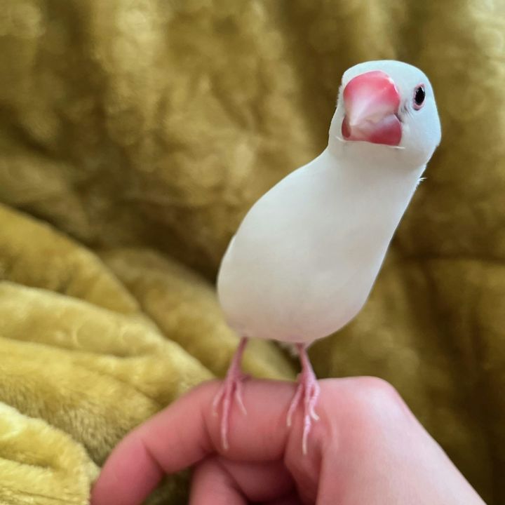 投稿者の白🍚御米と御萩さん。ペットの文鳥の驚いた様子を投稿してくれました。