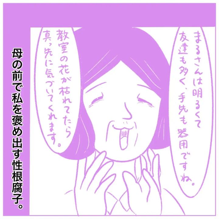 いつもまるさんを悪く言ってばかりの先生ですが、懇談会ではお母さんの前でまるさんを褒めだしました。
