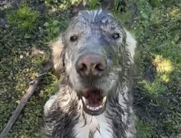 「こんなになるまで遊んだよ!」泥だらけの犬さんの誇らしげな姿