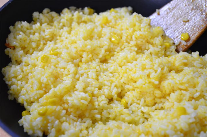 炒めたにんじんとコーンの黄色が相まって、見た目も鮮やかなのでソーセージをトッピングしたり、肉料理などに添えても良さそう!