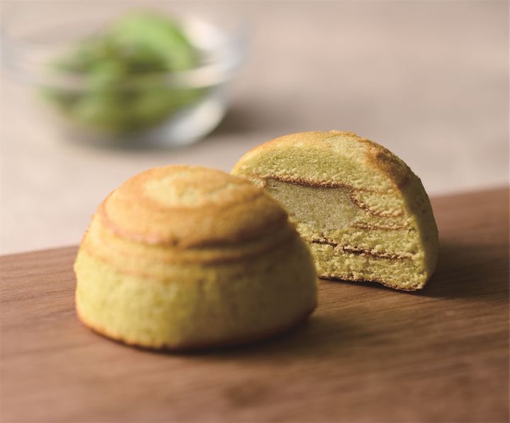 宮城県発祥のずんだ生クリーム大福をイメージ。ずんだあんに生クリームを混ぜ込み、生地の中に包んでドーム型に焼き上げたバウム。