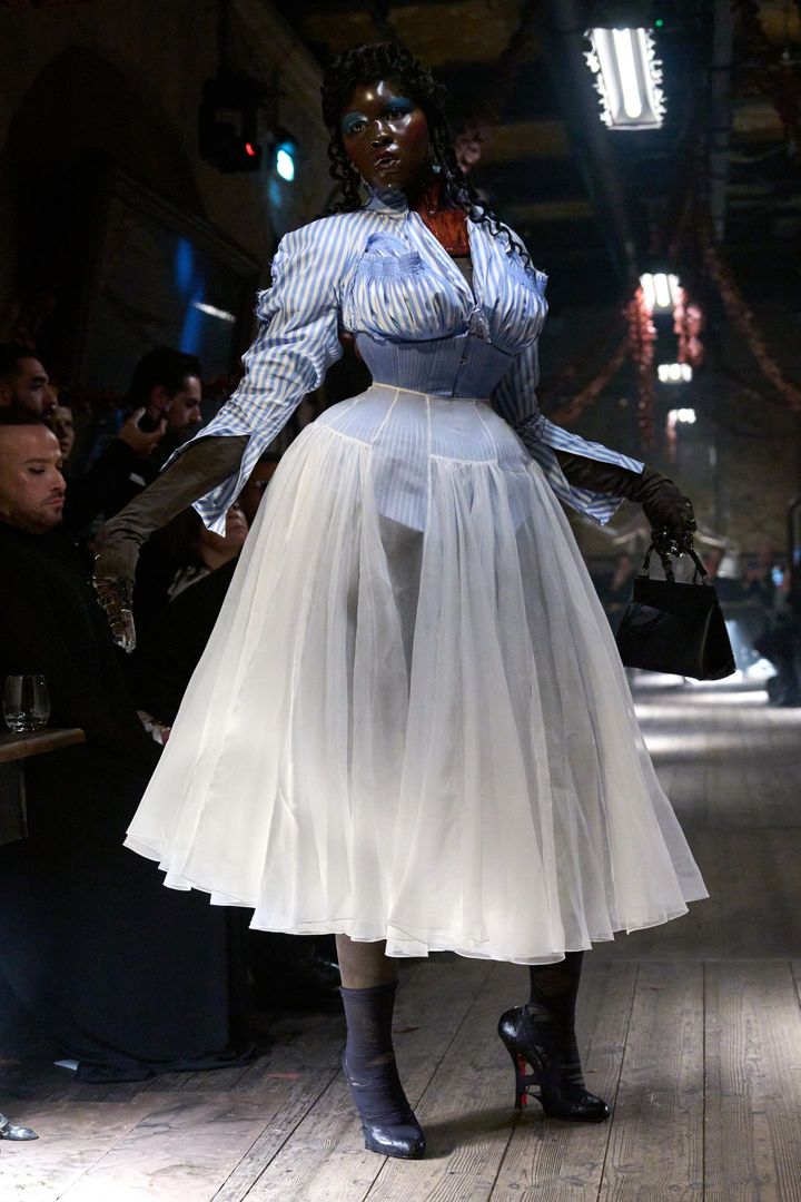 Photo: Filippo Fior / Gorunway.comメゾン マルジェラ 2024年春夏アーティザナルコレクションショーより。モデルはクリスチャン ルブタンとの初コラボレーションによるハイヒールの「タビ」を履いていた。