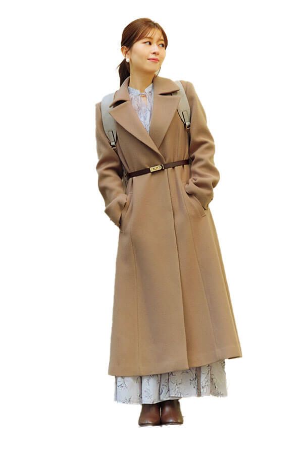 リュック[43×30×12]¥18,700/ジュエルナローズ(エース) コート¥64,900/アプワイザー・リッシェ ワンピース¥16,940/MERCURYDUO(MERCURYDUO ルミネエスト新宿店) ピアス¥8,800/masae(ロードス) 靴¥8,900/オリエンタルトラフィック(ダブルエー)