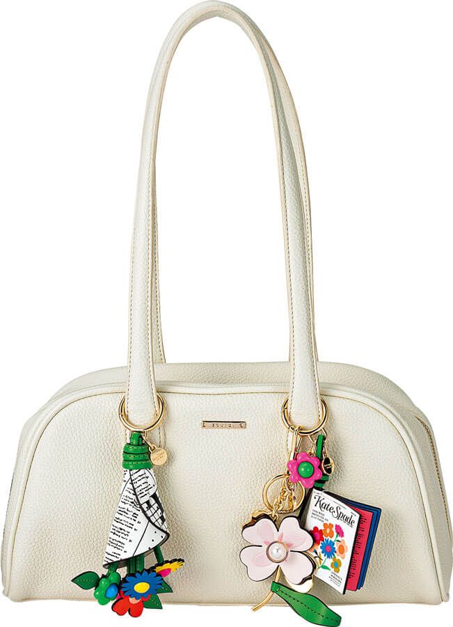バッグ[14.5×29.5×11㎝]¥15,400/ストラ 本チャーム¥19,800、花チャーム¥19,800、花束チャーム¥24,200/以上ケイト・スペード ニューヨーク(ケイト・スペード カスタマーサービス)