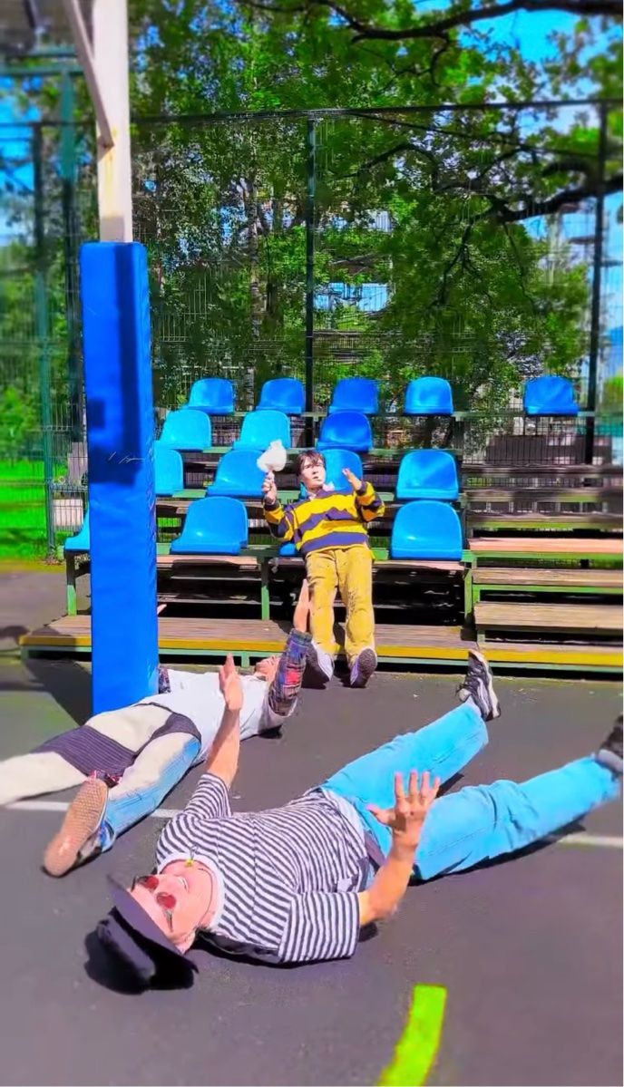 頭にボールが直撃した男性。 この男性はマネキンそっくりな動きで地面に倒れ込みました。 しかも、周囲の人たちも同じくマネキン化していたのです!!