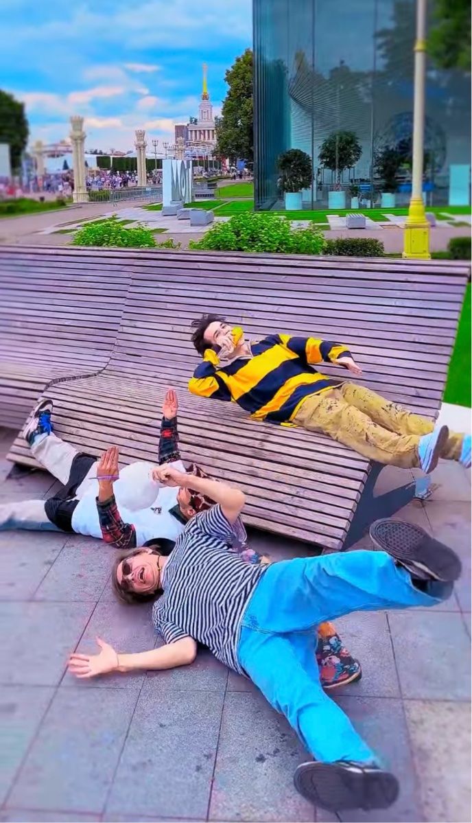 今度は、引き寄せられるように絶妙なタイミングで倒れ込んだ3人。