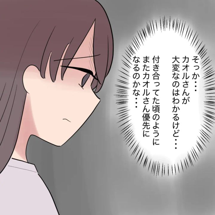 「そっか・・カオルさんが大変なのはわかるけど・・。付き合ってた頃のようにまたカオルさん優先になるのかな・・」カオルさんの大変な状況は理解できるものの、シンジさんが以前のようにカオルさん優先になるのではないかとユキノさんは複雑な心境になります。