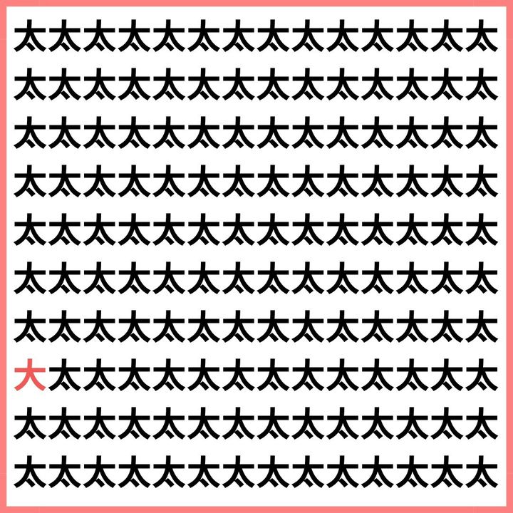 3. 太だらけの中に仲間外れ【1文字だけ違う】漢字間違い探しで脳トレ、何秒で見つかる?