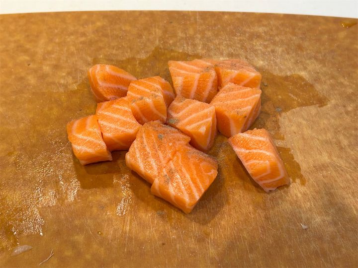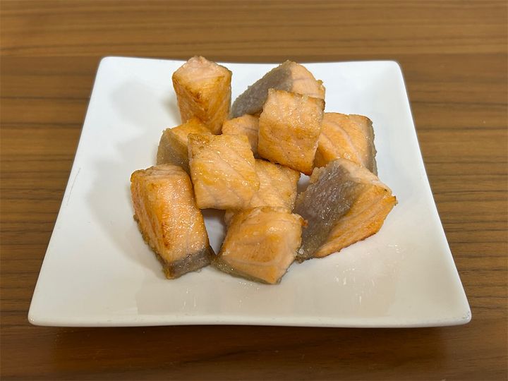 筆者の中で、刺身用のサーモンを焼くというアイデアは今までなかっただけに、新鮮さを感じるレシピでした。