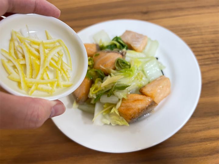 そして忘れてはならないのがレモンの皮!さっぱりとした味わいに仕上げてくれます。
