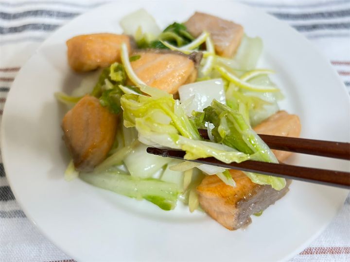 サーモンのアレンジレシピ!「サーモンと白菜の塩味炒め」の材料と作り方