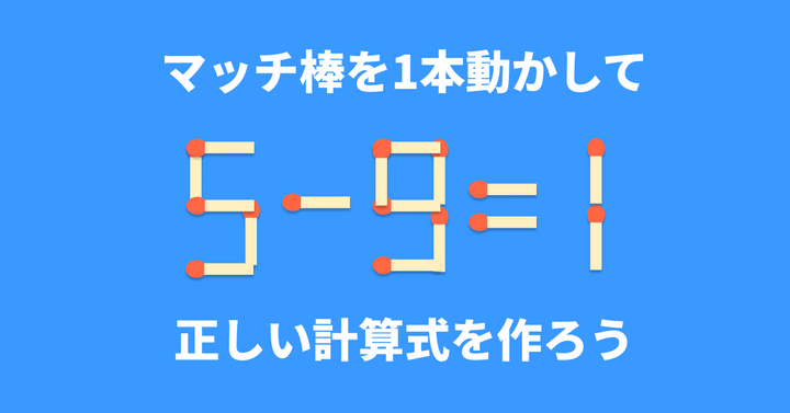 【脳トレ】マッチ棒1本を動かして「5-9=1」を成立させるには?【マッチ棒クイズ】