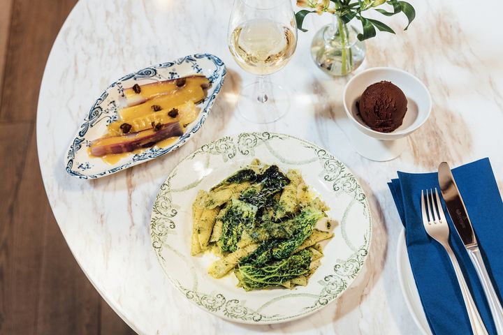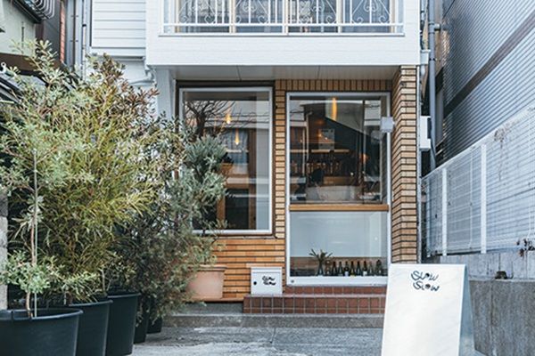 代々木上原駅から徒歩数分の可愛らしい一軒家。去年の12月にオープンしたワインと小皿料理の店『SLOW』は、入った瞬間「あ、居心地がいい」と感じさせてくれる何かがある。1階奥の大理石のテーブル席は友だちのアトリエに遊びに来たような空気感だし、そこにずらりと小皿料理が並べば祝祭的な嬉しさが込み上げる。フランスのアンティーク食器によそわれた料理は、とろける舌触りのポワローヴィネグレットにしても、野菜の味わいを生かしたジェノベーゼのパスタにしても、クラシカルで風味豊か。普遍的ながらもピントがバッチリあったおいしさに嬉しくなる。ここには店主の好きなものしかないんだな、と気づく。