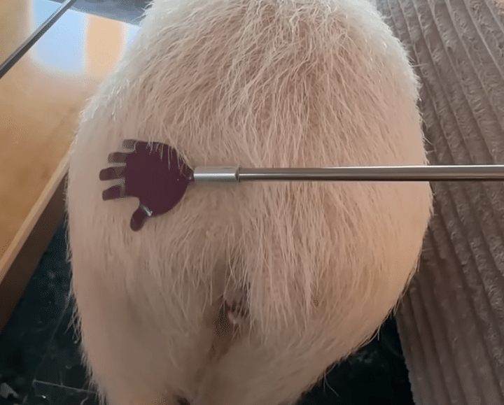 ブラッシングに夢中! 孫の手でゴシゴシされるミニブタさんが可愛すぎる