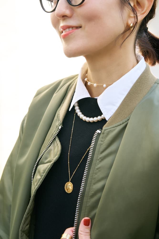 〈パール×ゴールド〉小物使いの達人ライターはジュエリーを主役にコーディネート
