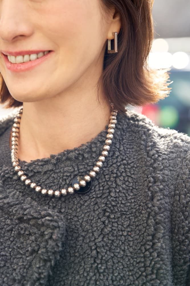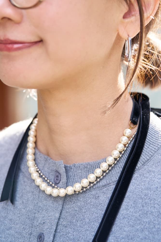 〈パール×シルバー〉ファッションのテイストに合わせてジュエリーも着替える派