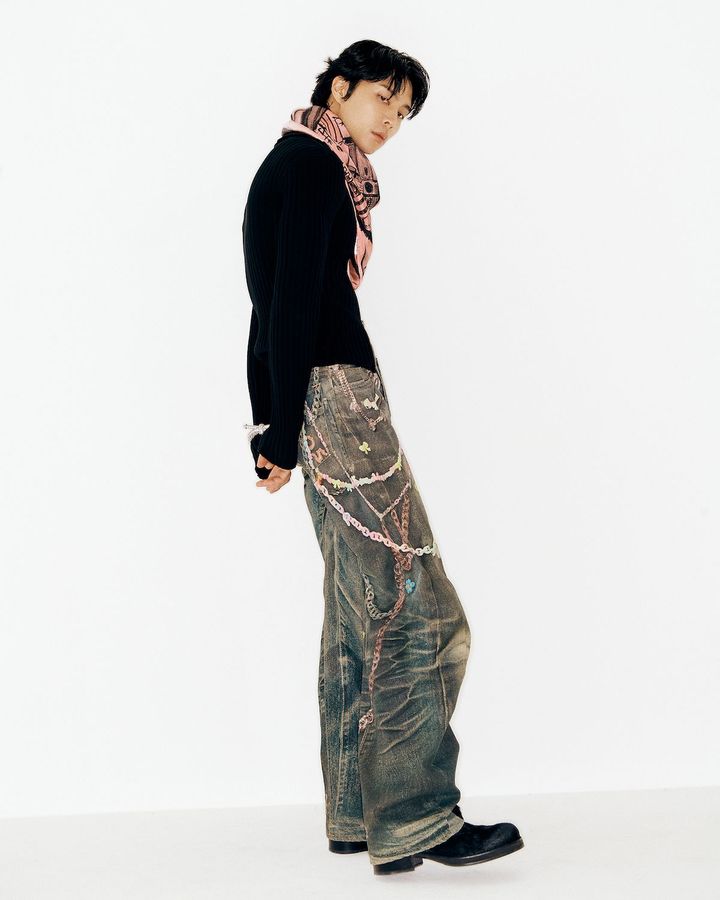 NCTジャニーは、2025年春夏コレクションの注目アイテムである「Cameroバッグ」やトロンプルイユデニム、スタイリッシュなセットアップなどを着用し、ブランドのアイコニックなスタイルを体現している。今後のジャニーとアクネ ストゥディオズによるタッグに注目して。