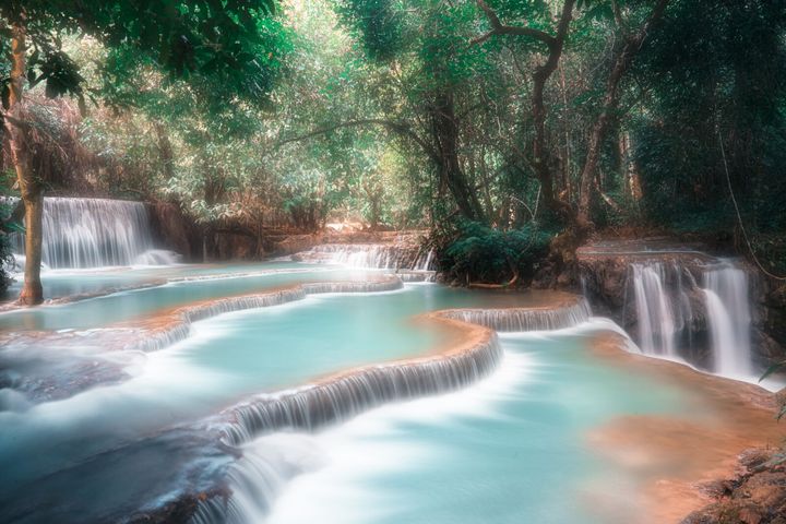 町の中心部から約30キロ離れているクアンシーの滝は、ラオス随一の美しさを誇ると評されています。
