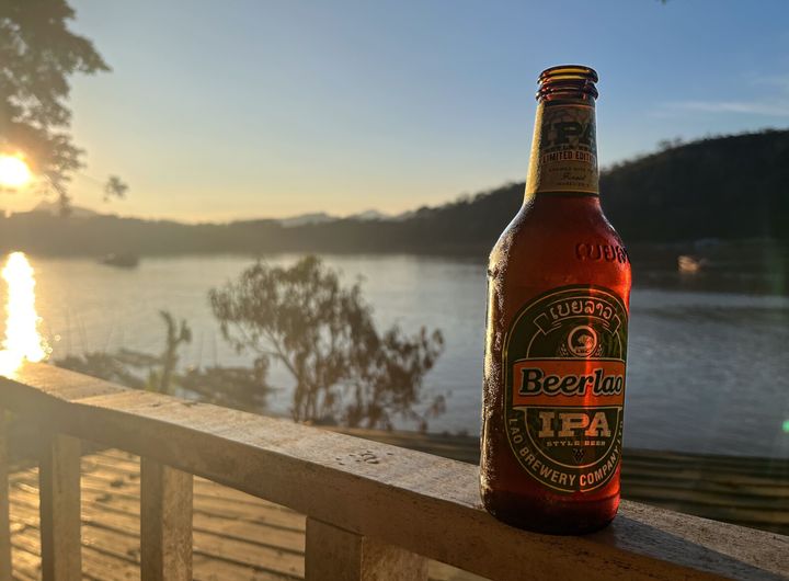 メコン川に面した絶好のロケーションで、夕日を見ながらお酒や食事を楽しむことができます。お店の名前にもあるように、テラス席に座ると360度の素晴らしい夕日を一望できます。私はメコン川に落ちていく夕日を鑑賞しながらラオスビールをいただきました。
