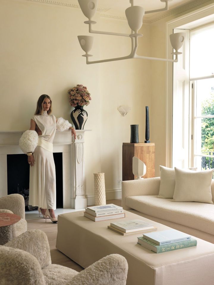 また、キッチン、バスルーム、ドレッシングルームのキャビネットにも、同じ木材を採用した。 壁は温かみのあるオフホワイトを選択し、職人の仕上げの技が光っている。この空間に、ウニアックはクリーム系のソフトな中間色のアイテムを配置した。これはインテリアとファッションに共通した、ロージー の好みのスタイルだ。 「ここにいると、喜びが湧きあがってくるとともに、心が落ち着き、静寂が得られます」と、ロージーはこの環境を絶賛する。
