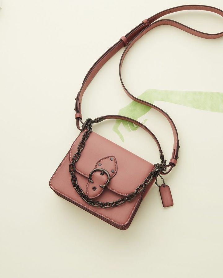 ショルダーストラップ、ハンドルストラップ、そしてチェーンストラップと、3種のストラップでいろいろな表情が楽しめる。ヴィンテージライクな風合いのピンクは、大人も使いやすいほどよい甘さです。バッグ「グラブタン レザー Beat18」〈H15×W18×D8〉¥64,000(コーチ/コーチ・カスタマーサービス・ジャパン)