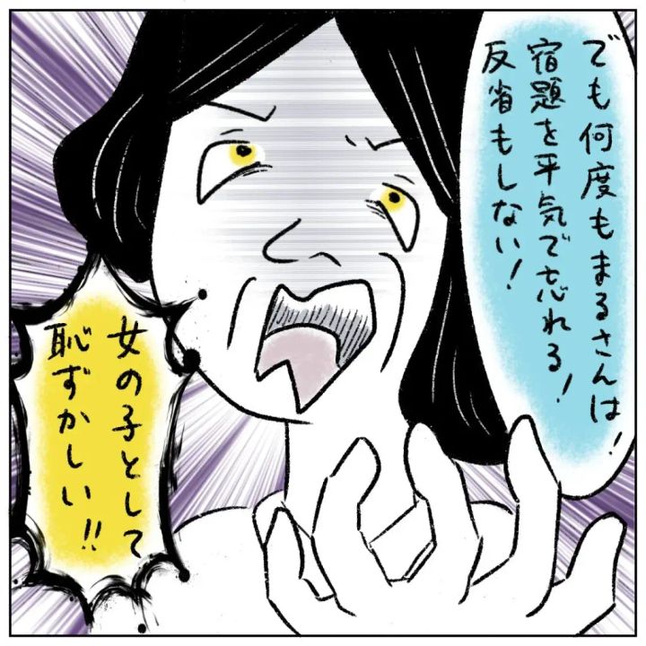 そして「でも何度もまるさんは!宿題を平気で忘れる!反省もしない!女の子として恥ずかしい!!」と語気を強めて言いました。