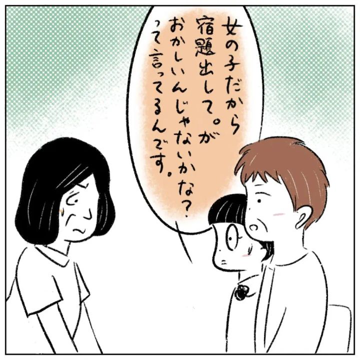 お母さんは「女の子だから宿題出して。がおかしいんじゃないかな?って言ってるんです」と改めて言いました。
