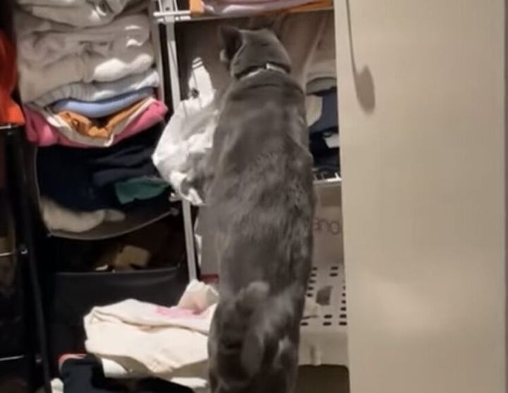 3. 衣替えの季節にクローゼットで悩む猫 「この服じゃにゃい」