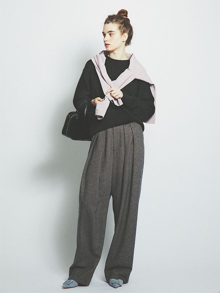 3. 【明日なに着る?】ウールなのに厚すぎない「春からも着回しやすい」グレーのワイドパンツ