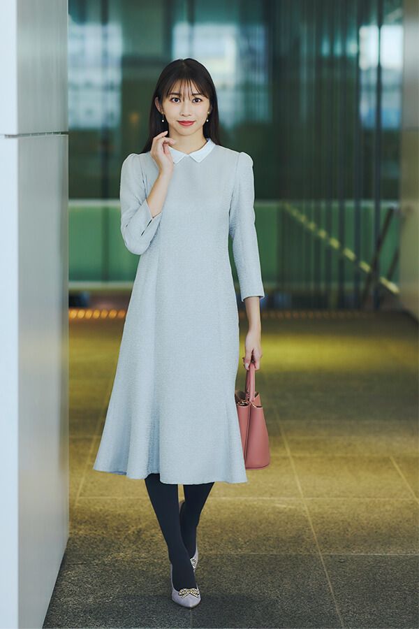 しごでき風に着こなせるえり付きワンピースで品よく華やいで【後輩OLの華やか通勤服】