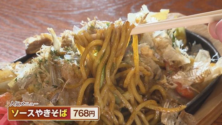 熱々の鉄板で出す焼きそばも人気メニューのひとつ。