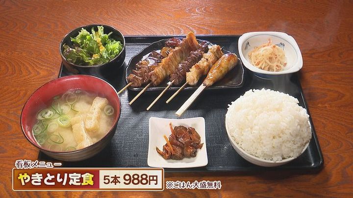 やきとり定食!30種類ある串の中から、好きな串を5本選ぶことができるんです!