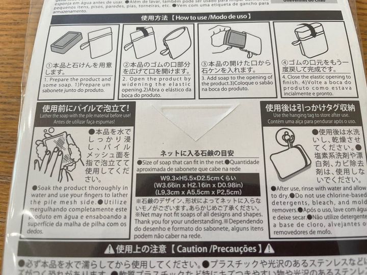 ネットに入る石けんのサイズはW9.3cm×H5.5cm×D2.5cmくらいです。